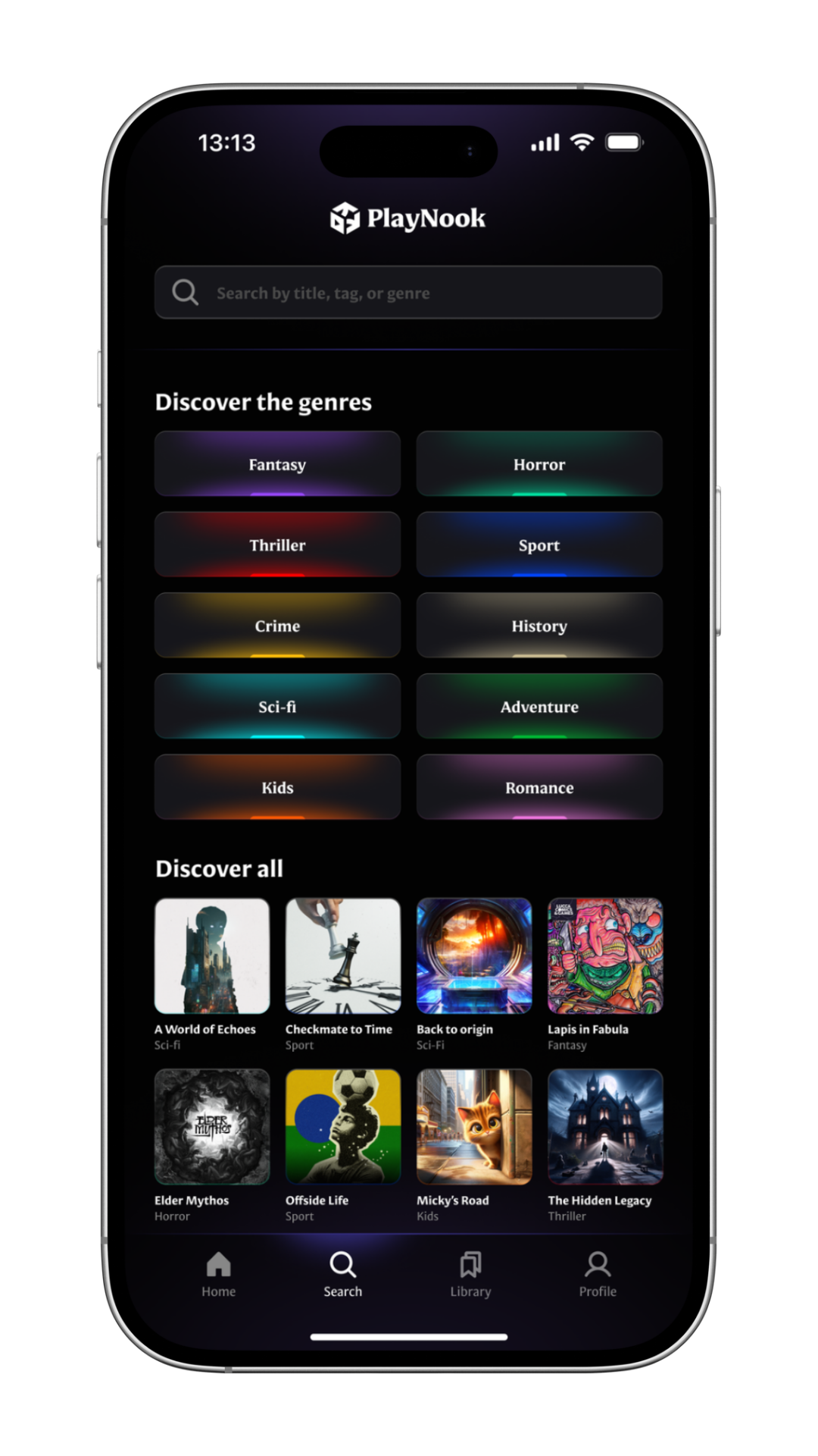 Imagine an experience in between an audiobook and an interactive fiction. That’s an AudioGame! Immersive sound design, professional voice actors and original soundtracks: an audio-first experience you can play wherever you are, also on-the-go.
